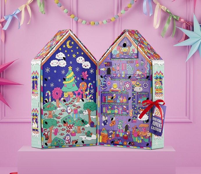 Bienvenue au pays des rêves avec 29 High Street Advent Calendar imaginé par Sherrie Tilley pour Lush (145 euros). Ce coffret contient 25 merveilles pour les passionnés de bain. Il offre une variété ludique de bombes de bain moussants, avec en bonus 5 personnages en carton à découvrir au fil des jours.