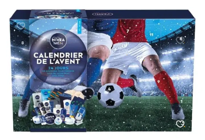 Dédié à la beauté et soins pour homme, le calendrier de l’Avent Nivea Men* (49,50 euros) propose un compte à rebours avec des cosmétiques et accessoires pour prendre soin de sa peau et son bien-être. Le 25 décembre, ce sera une routine complète pour homme qui sera constituée composée de cosmétiques beauté (gel douche, des crèmes, gel de rasage…) et d’accessoires (chaussette, serviette, set manucure, etc.) !