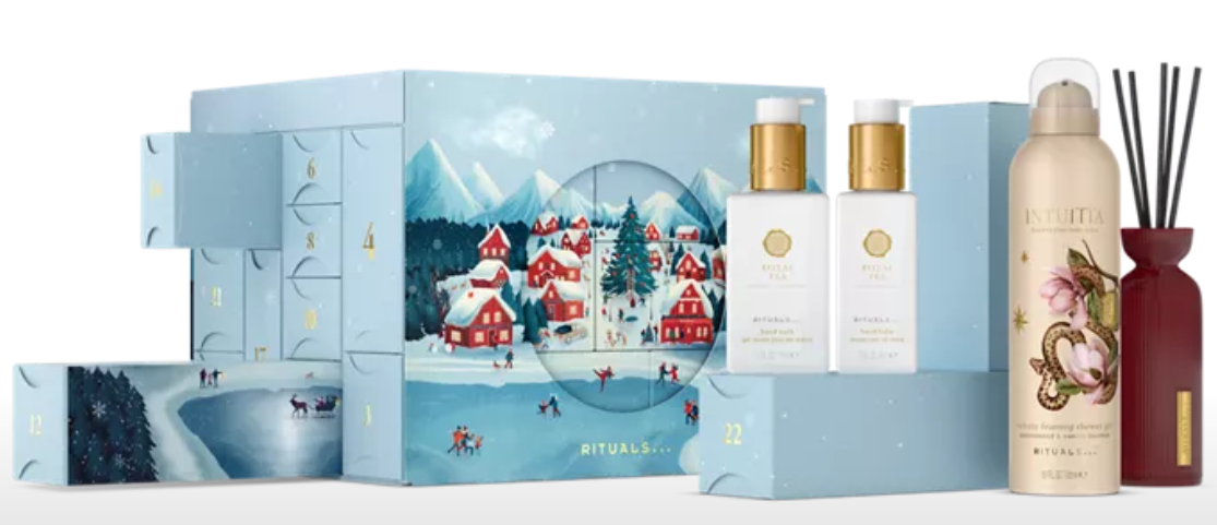 Le calendrier de l’Avent Deluxe Rituals* (119,90 euros) fait entrer dans un monde féérique avec son décor à 360 degrés dont une boite est à retirer chaque jour. Des soins gourmands pour le corps aux essentiels pour la maison, chaque produit apporte une touche de raffinement. Parmi les surprises : 3 produits grand format, des produits en édition limitée, des bougies de l’Avent exclusives.